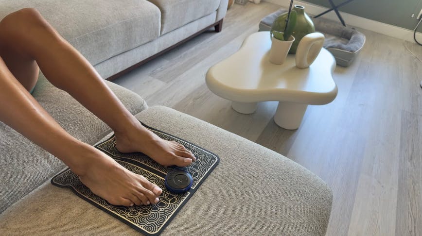 Masaža stopala IKEROS koristi NMES tehnologiju za aktivaciju cirkulacije krvi i pomaže u olakšanju bola, utrnulosti i oticanja – udobno kod kuće, bez lijekova ili posjeta liječniku.